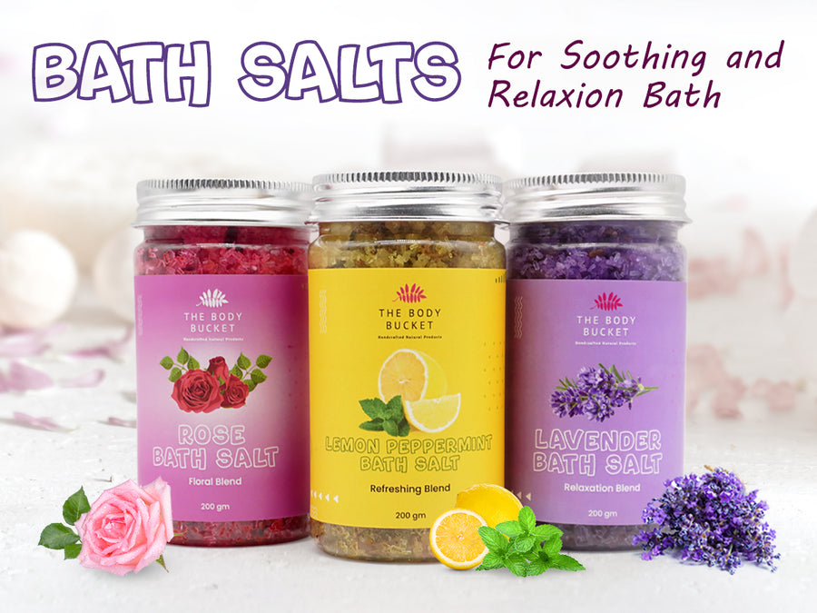 The Body Bucket Bath Salts-Pack of 3 - 200gms each | Combo of Lavender, Rose and Lemon PeppermintRegular price Rs. 599.00