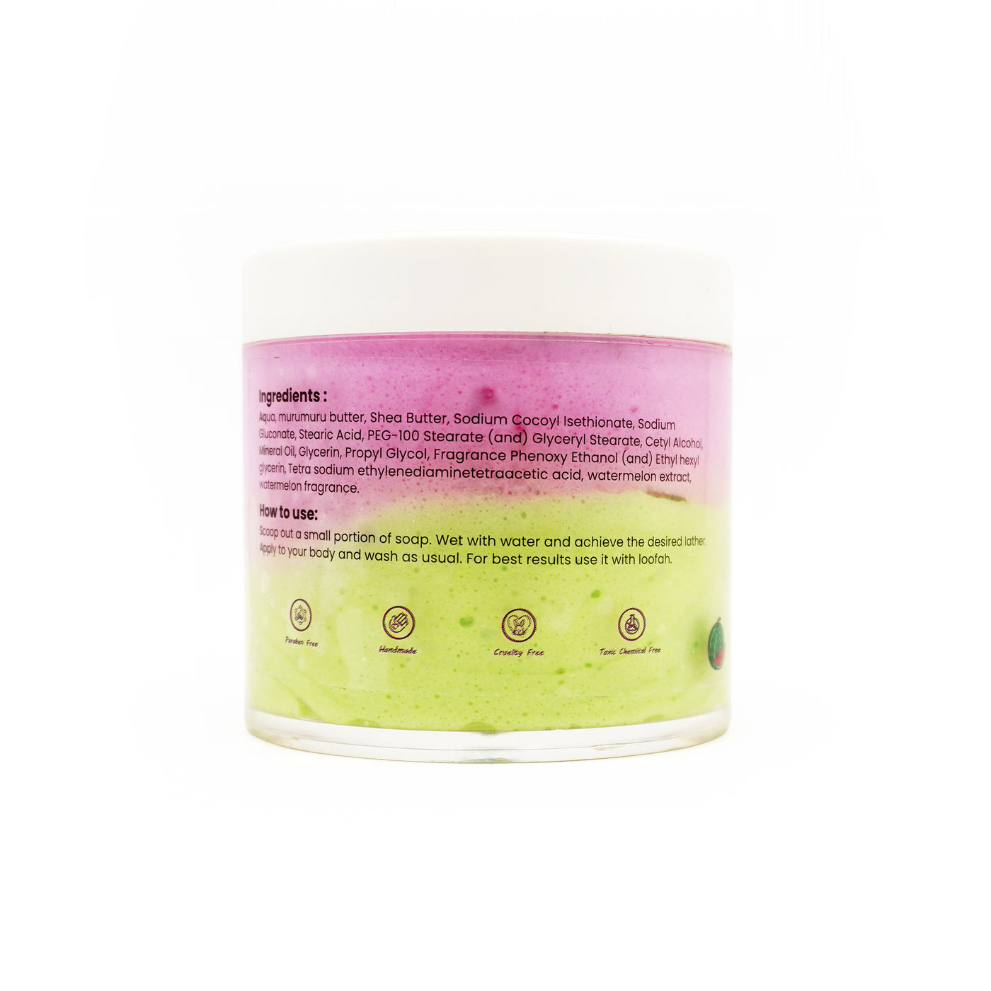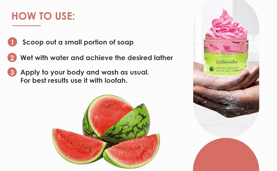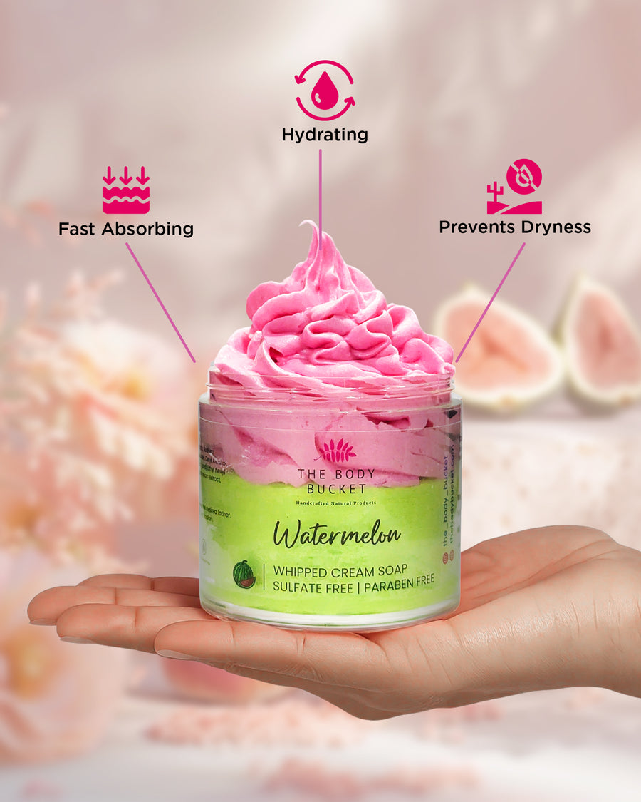 Indulge in a juicy watermelon whipped cream soap that deeply nourishes your skin, leaving it soft, glowing, and beautifully refreshed.