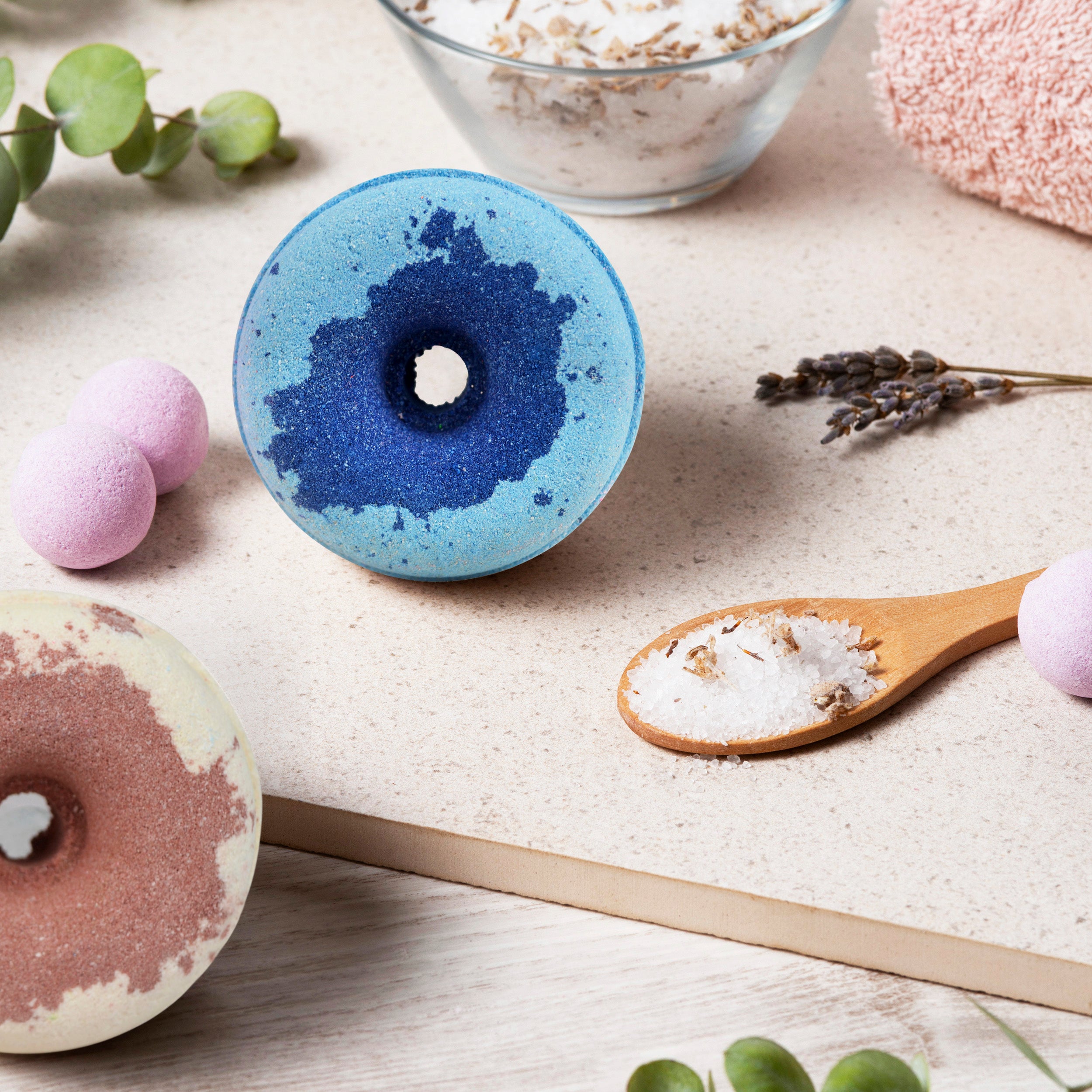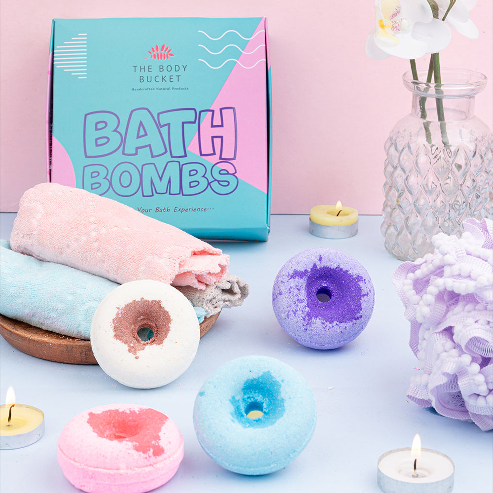 Donuts bath bombs with aqua, rose, lavender and vanilla fregrances(65 gram each)