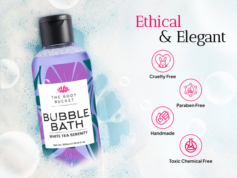Immerse yourself in a soothing white tea–infused bubble bath that hydrates, relaxes, and transforms your everyday bath into a spa-like self-care ritual.