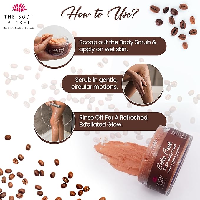 Revitalize your skin with The Body Bucket Coffee Crush Body Scrub, an indulgent 3-in-1 treatment that exfoliates, cleanses, and hydrates your skin to perfection. Infused with the nourishing power of Coffee Extract and Coconut Oil, this handcrafted scrub leaves your skin feeling irresistibly soft, smooth, and radiant. The invigorating coffee fragrance provides an energizing boost to your skincare routine, transforming it into a luxurious experience.