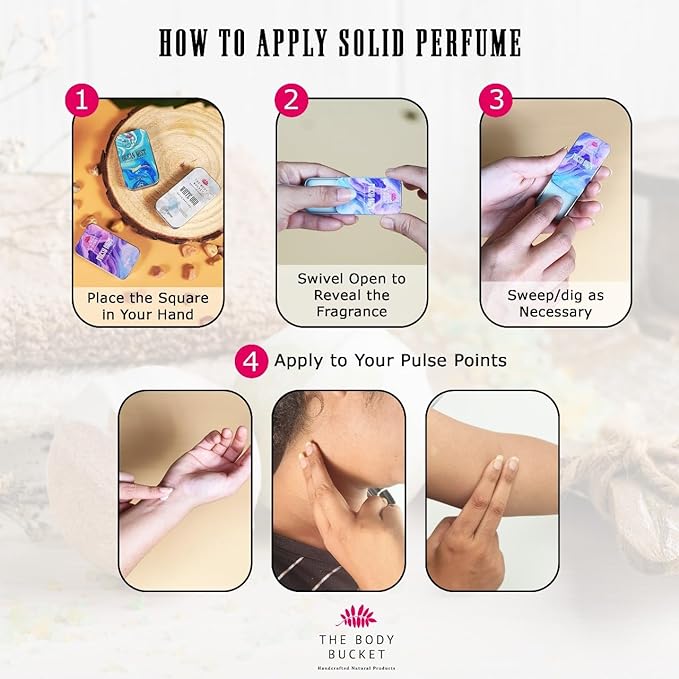 Our solid perfumes are designed to last 4-5 hours, depending on your skin type and environment.