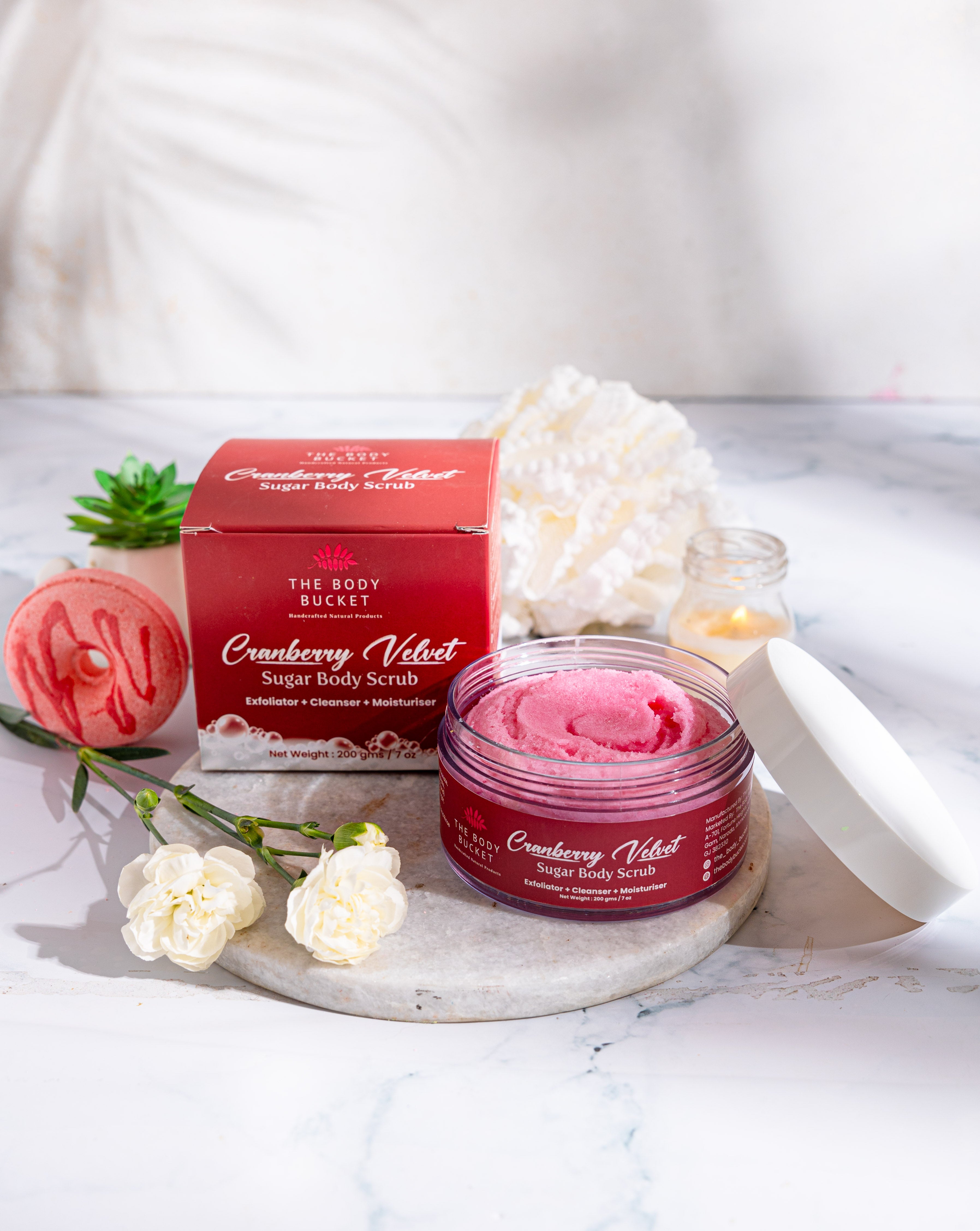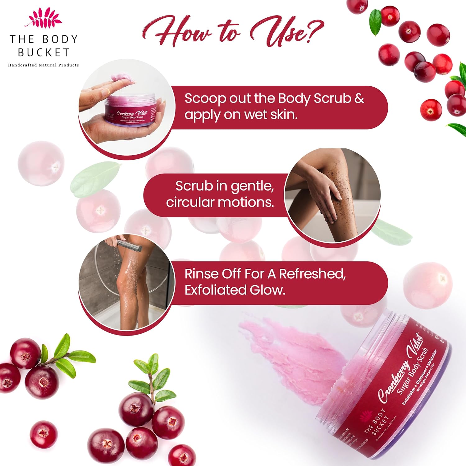 The Body Bucket Cranberry Velvet Sugar Body Scrub - Exfoliator + Cleanser + Moisturiser (200g)