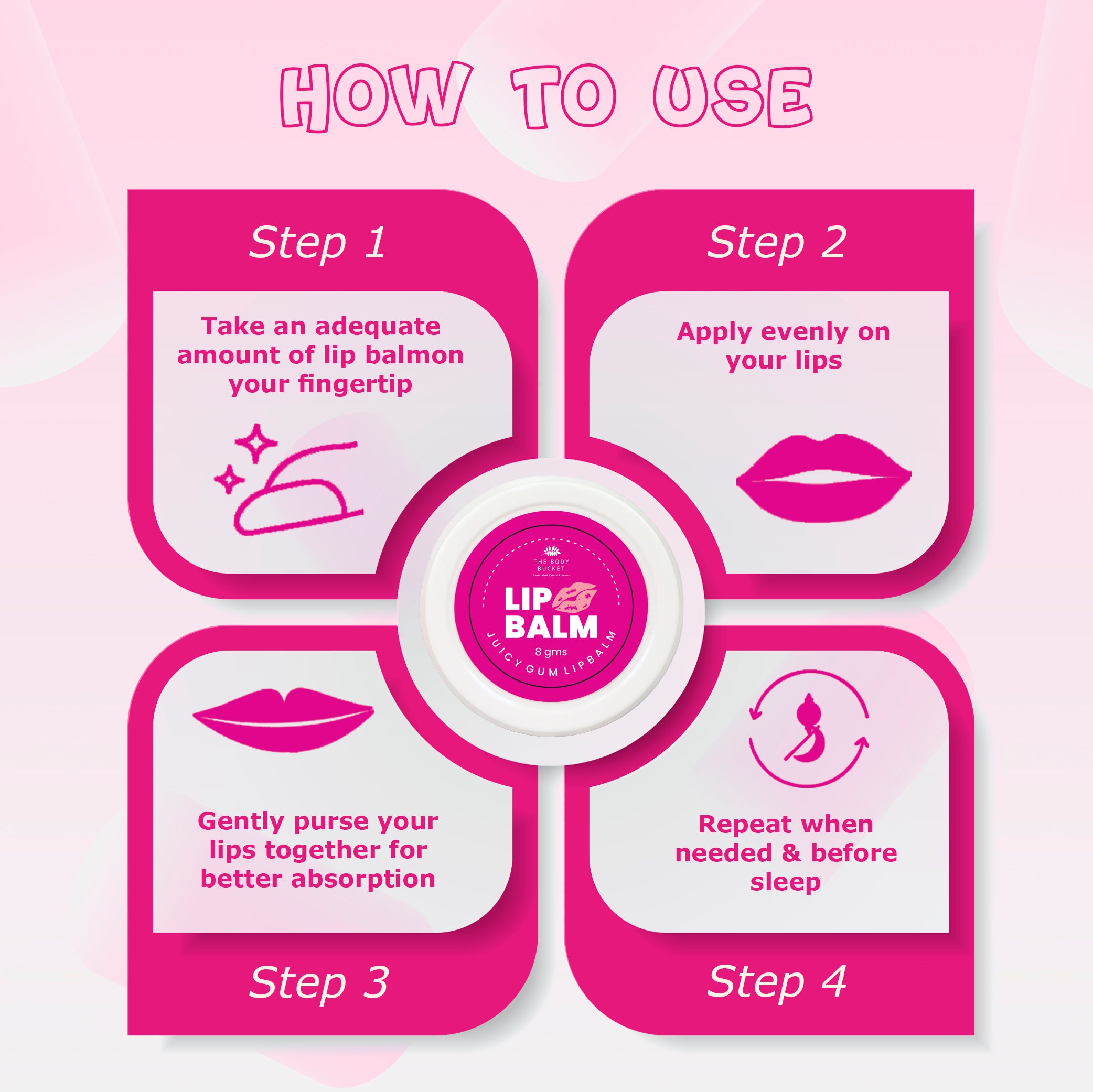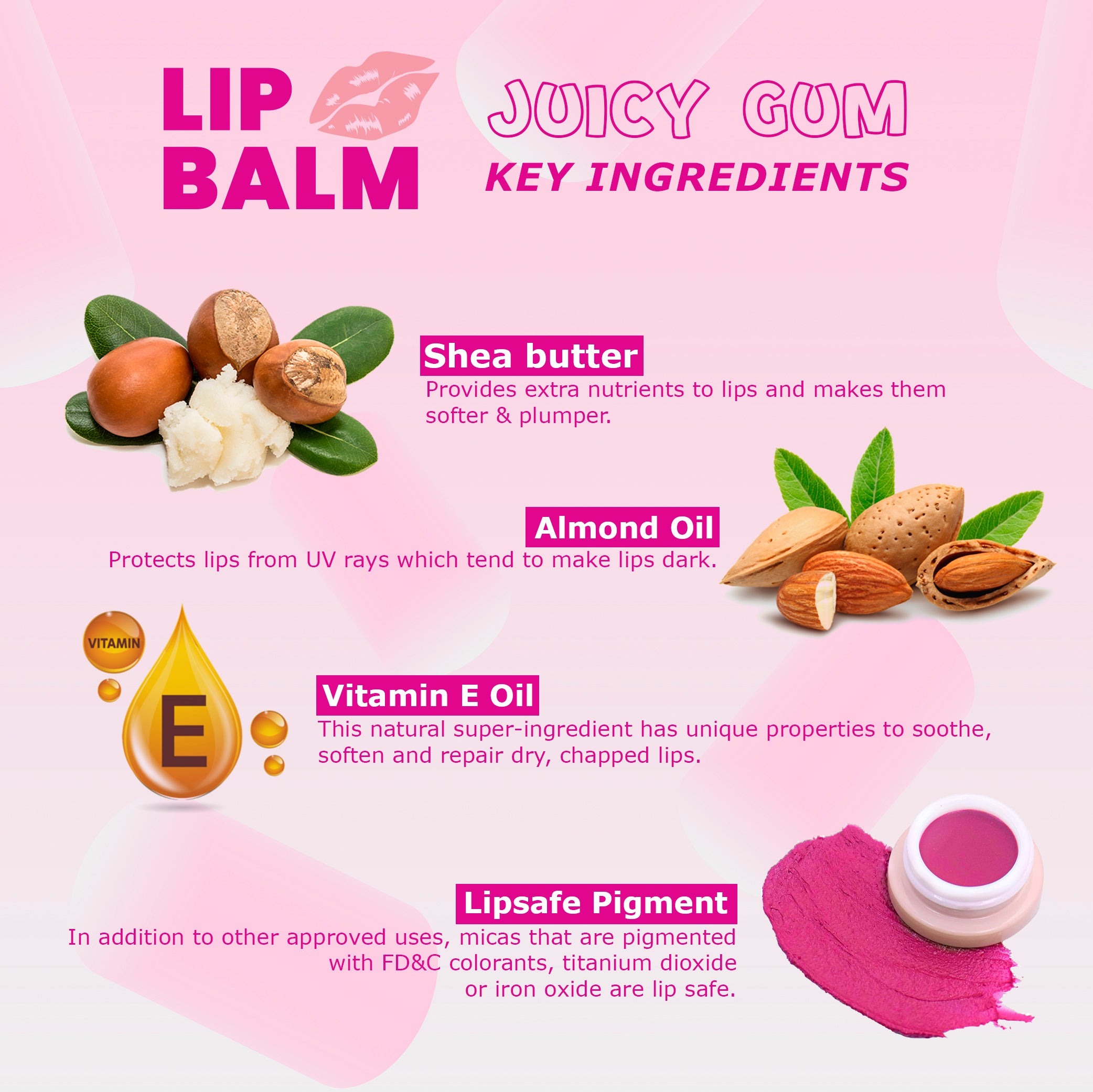 Juicy Gum Lip Balm-8 gms| Made with Shea Butter, Almond Oil, Carrot Seed Oil, Vitamin E & Lip safe Pigment