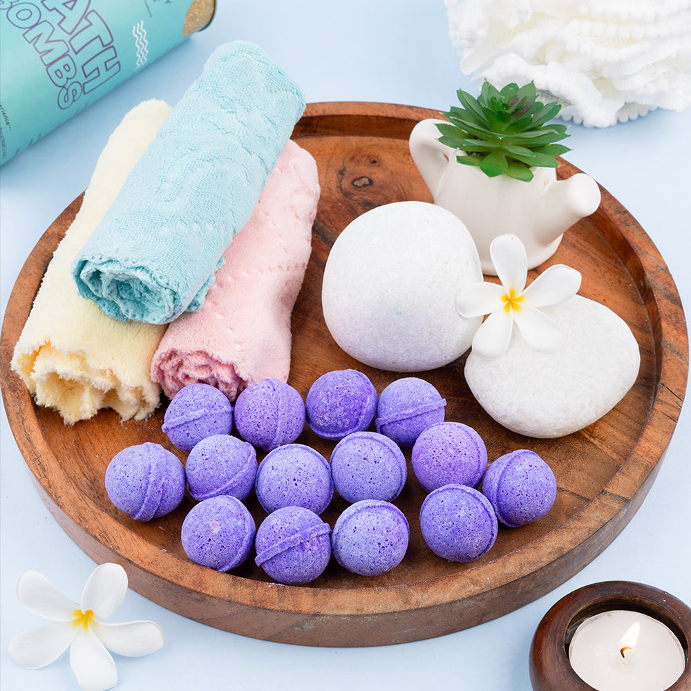 Unwind and rejuvenate with our lavender mini bath bombs pack of 10 pieces. Each bath bomb is 1 inch in diameter and is packed with the soothing scent. You have more choices while you want to enjoy the bubble bath, just choose the one you’d like to use at the moment. These mini bombs are made with natural ingredients, which is known for its calming and relaxing properties.