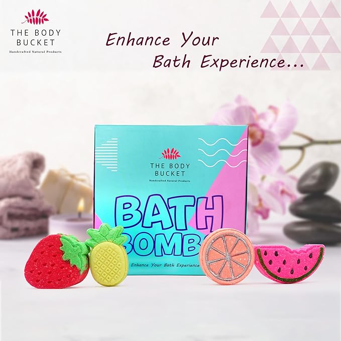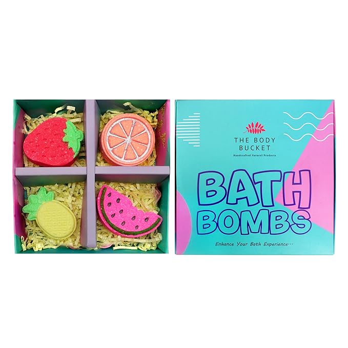 Orange, Strawberry, Watermelon, Pineapple Fruit Basket Bath Bombs 75 gms Each (Pack of 4)