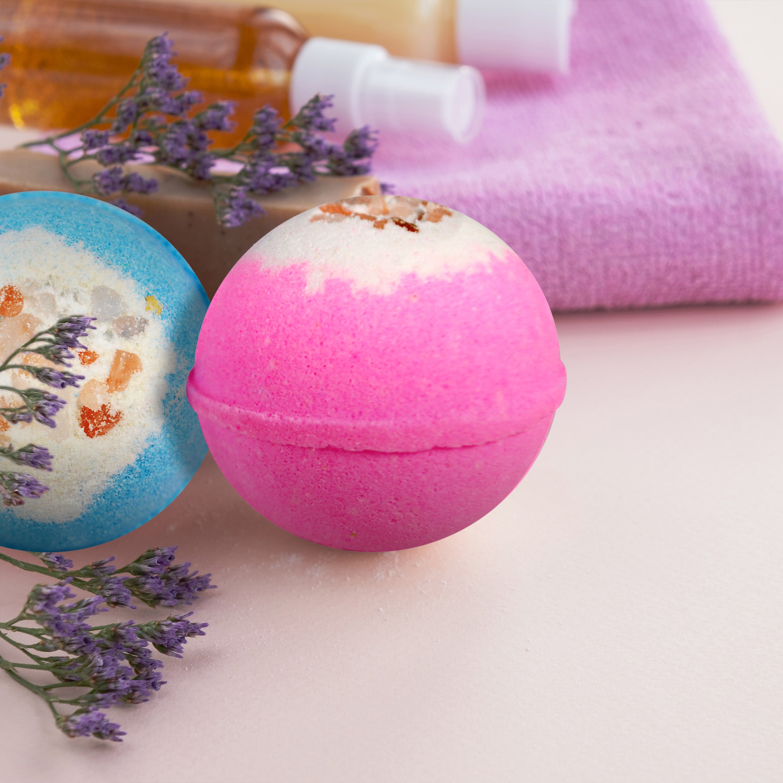 There are 4 pieces of bath bombs. Feed your soul with our blue ocean, rose, lavender and citronella bath bombs of 65 grams each in one box, they all have gorgeous fragrance each bath bomb about 2-inch diameter. You have more choices while you want to enjoy the bubble bath, just choose the one you’d like to use at the moment. We use nature derived and food grade ingredients. We don't use ingredients that we wouldn't use on ourselves or our own children.