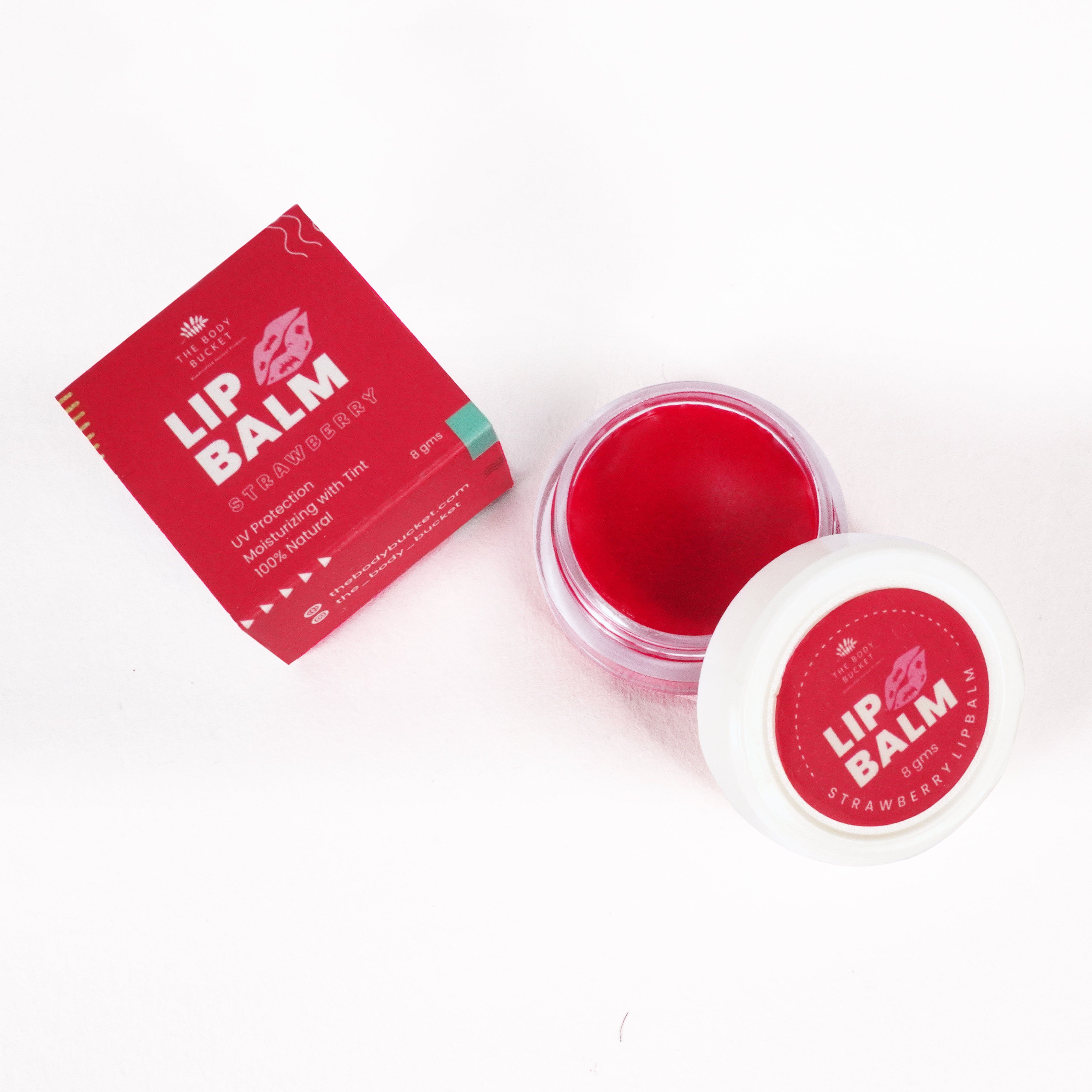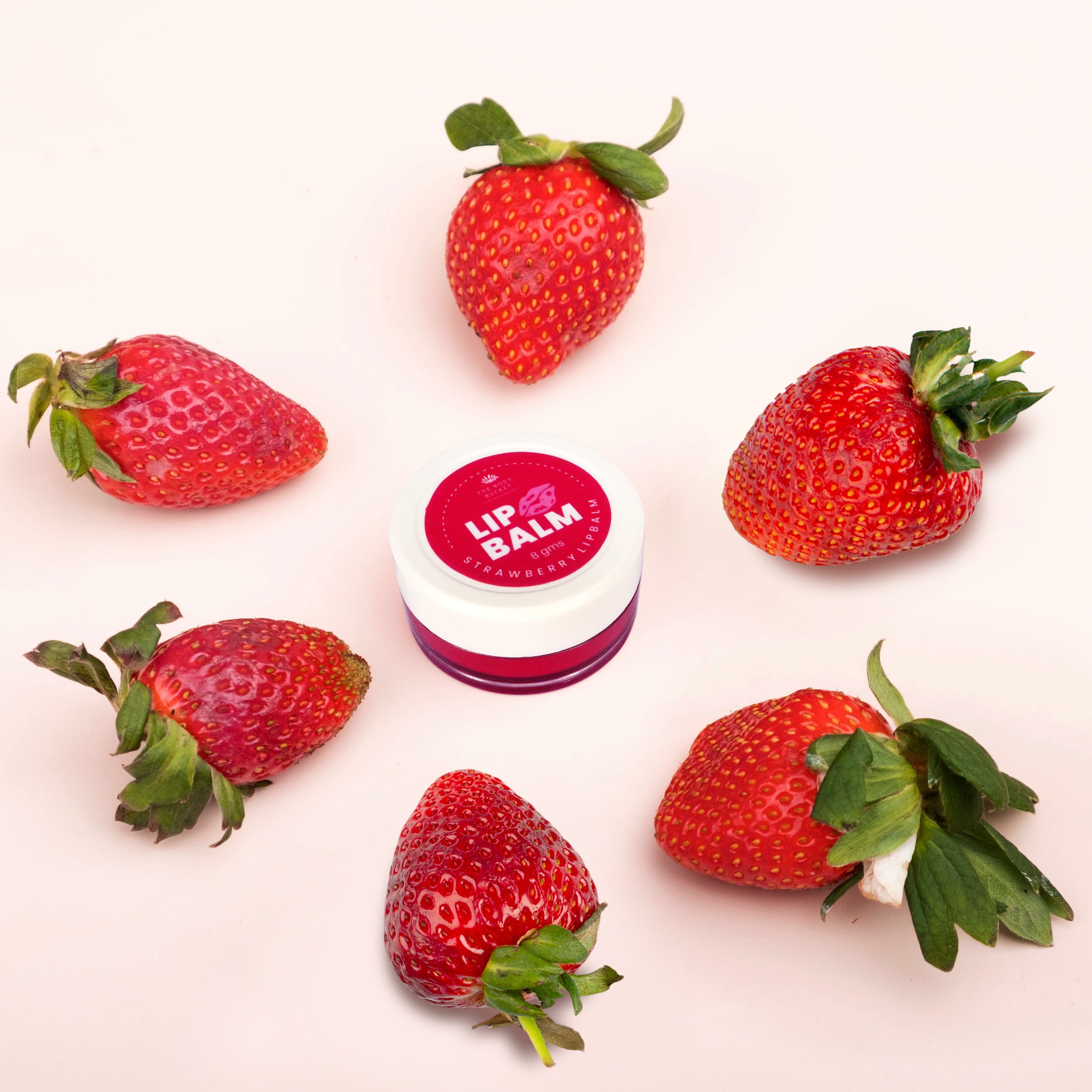 Strawberry Lip Balm-8 gms| Made with Shea Butter, Almond Oil, Carrot Seed Oil, Vitamin E & Lipsafe Pigment