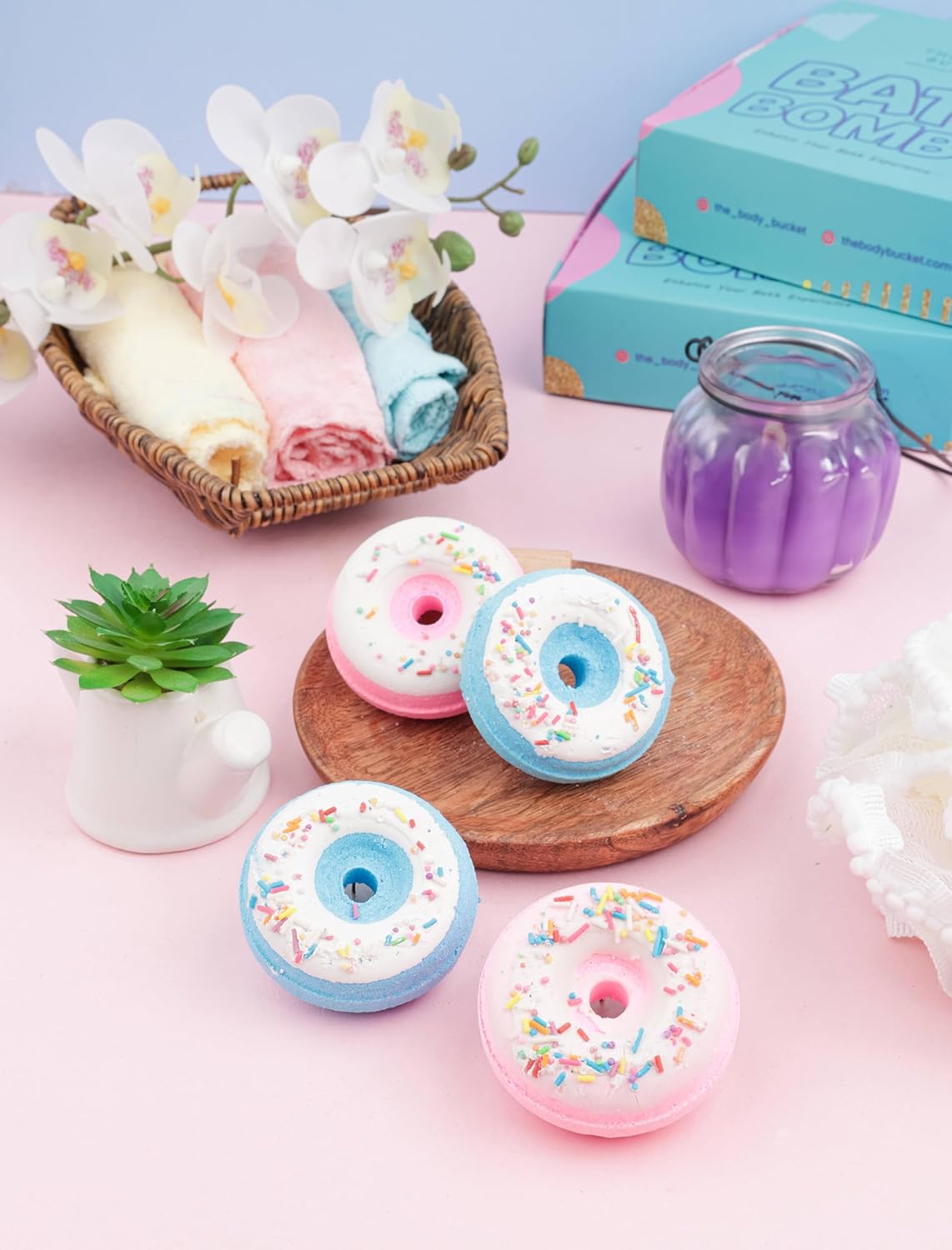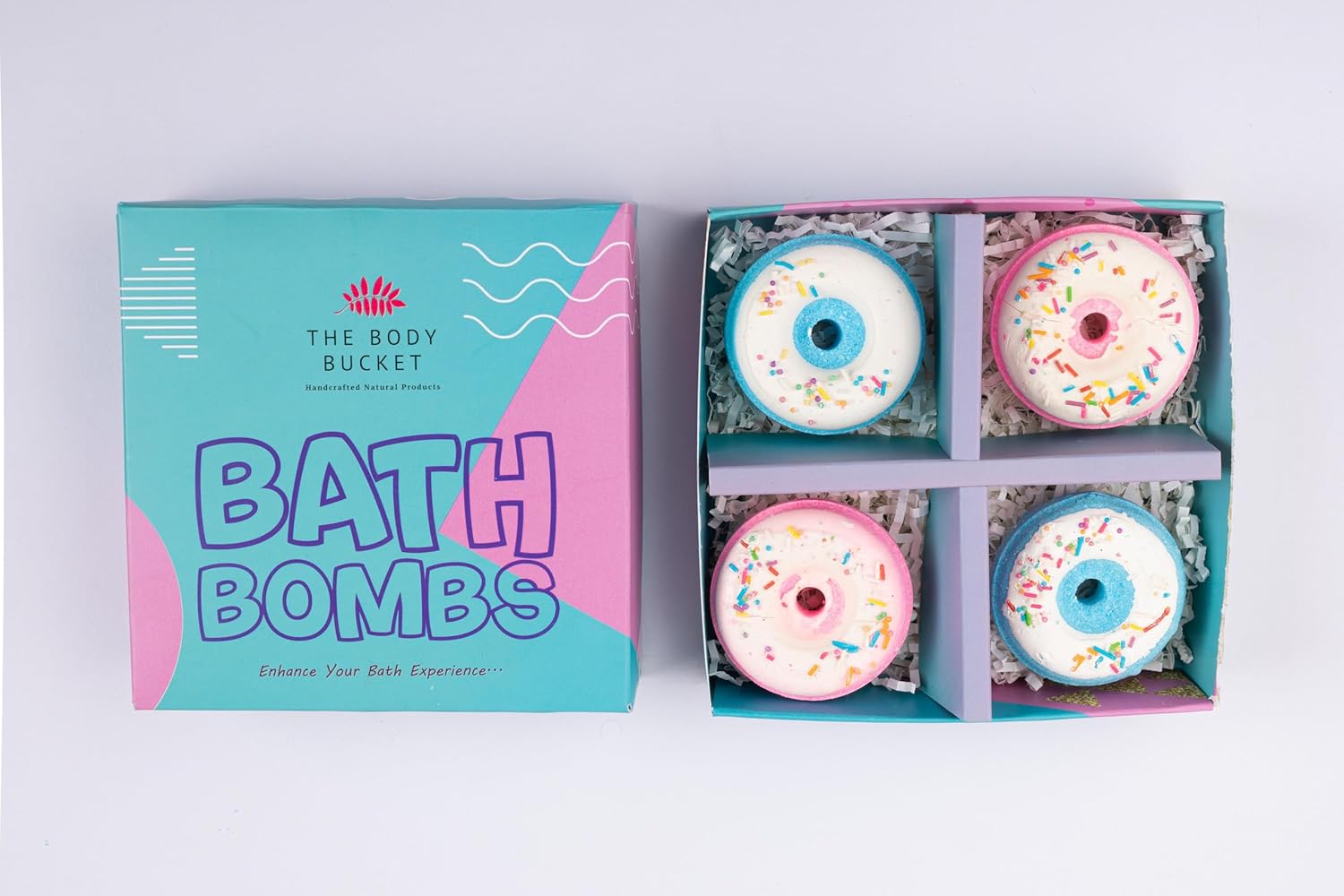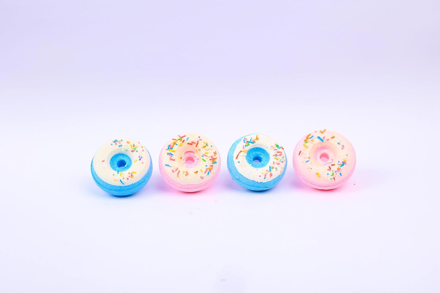 Blueberry & Cranberry Donut Bath Bombs - 65g Each (Pack of 4) | Natural Handcrafted Aromatic Fragrance | Relaxing Bubble Bath Experience | Ideal Gift for Kids, Men & Women